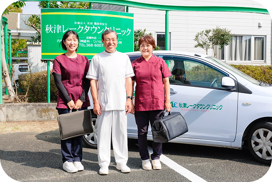 通院が難しい方のご自宅や施設へ医師・看護師が定期的に訪問し、診療を行っています。